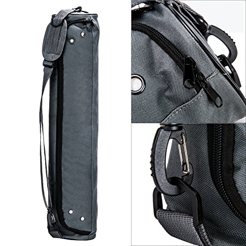 Feature : √ Size - 28 inches (L) × 6 inches (D); Material - Durable 420D Oxford Cloth, more wear resistant than general canvas / √ Unique classic-design easily adjusts to fit almost any yoga mat; This smaller version is especially the perferct fit for the travel yoga mat / √ One breathable main compartment with full length zipper provides protective carrying space for a yoga mat, towel, strap, and light clothing / √ Comfortable, adjustable, padded shoulder strap; Convenient side handles / √ Solid construction and durable ABS plastic and metal hardware