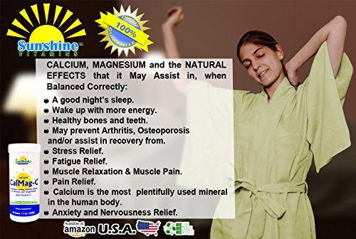 -. Binding : Health and Beauty -. Brand : Sunshine Vitamins -. EAN : 0700443324458 -. Feature : Essential Nutrients - Calcium Magnesium Vitamin C provides the necessary amount of calcium and magnesium. / Calcium For Healthy Nerve, Bone and Muscle Function and The Most Used Mineral in the Human Body. Magnesium is responsible for virtually every enzymatic reaction in the body. / Assists in: Sleep - Sleep apnea - Correct Calcium Ratio and Magnesium that is needed for Calcium to absorb. Also assists as a natural Pain Killer and a Host of other ailments. / Prevent Bone Calcium and Muscle Deficiency - Calcium Magnesium with Vitamin C will help the body regulate bone and muscle health to help stop skeleton deformity and muscle and heart problems. / 2:1 Elemental Ratio. Correct ratio for body PH and thus full absorption. Getting in your blood stream in minutes. Find instructions for use on youtube, it all leads back here to Amazon. -. IsAdultProduct : 0 -. Label : Helping Hands Life Improvement Center USA Inc -. LegalDisclaimer : No medical claims are made by this product nor is it intended to treat any disease, symptom or malfunction. Consult a physician before making any changes to diet or nutrition. -. Manufacturer : Helping Hands Life Improvement Center USA Inc -. PackageQuantity : 1 -. ProductGroup : Health and Beauty -. ProductTypeName : HEALTH_PERSONAL_CARE -. Publisher : Helping Hands Life Improvement Center USA Inc -. Studio : Helping Hands Life Improvement Center USA Inc -. Title : Instant CalMag-C - calcium magnesium - Many Doctors recommend as 1st choice 2:1 absorbable Calcium/Magnesium + Vit C Powder with correct pH. A Natural Sleep Aid, Muscle Relaxer and Painreliever. -. UPC : 700443324458