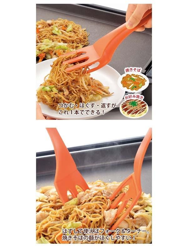 | はずせばフォークとターナーとして使える便利なトングです。つかむ・ほぐす・返すの3役をこなすのでお好み焼きや焼きそばの調理に大活躍です。 |