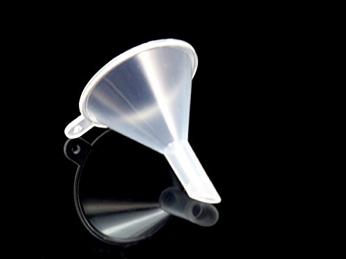 -. Feature : Made from polypropylene plastic / Pouring End Dim: 27mm (1-1/16") / Length Dim: 39mm(1-9/16") / Spout End Dim: 6.4mm(1/4") / Helper Funnels to Fill Small Samples of Perfume Liquid lsion
