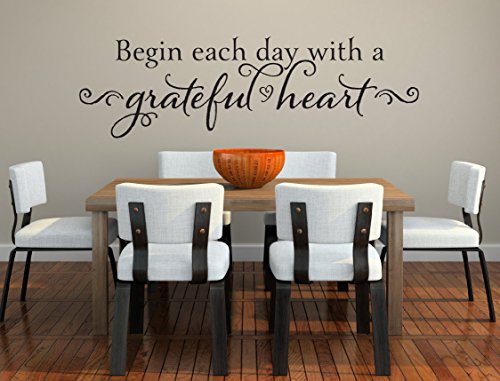 Begin Each Day With A Grateful Heart Wall Decal - Vinyl Wall Decal - Vinyl Wall Quote - Bedroom Wall Decal - Vinyl Lettering