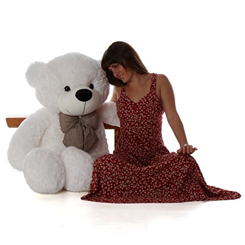 -. Feature : Made in USA with extra care & love, as well as non-clumping lightweight fiberfill that is never ever recycled. / Big, plump size teddy bear with a chubby teddy bear tummy, much like that of a real bear. His big soft arms & legs make him extra cuddly. / A happy face teddy bear with a big smile, big brown life-like teddy bear eyes, and the cutest black velvety smooth teddy bear nose. / Fluffy huge white teddy bear with super soft plush teddy bear fur. Pillow-soft body made with premium plush materials that have a heavenly feather-like feel. / Oversized Christmas teddy bear gift, measures 48 inches from head-to-toe, exactly the size of a 4 foot person.