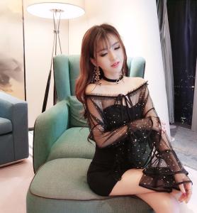 ミニ丈ワンピース チュールトップス 星型 ラメトップス オフショルトップス ベアワンピース タイトワンピース パーティー