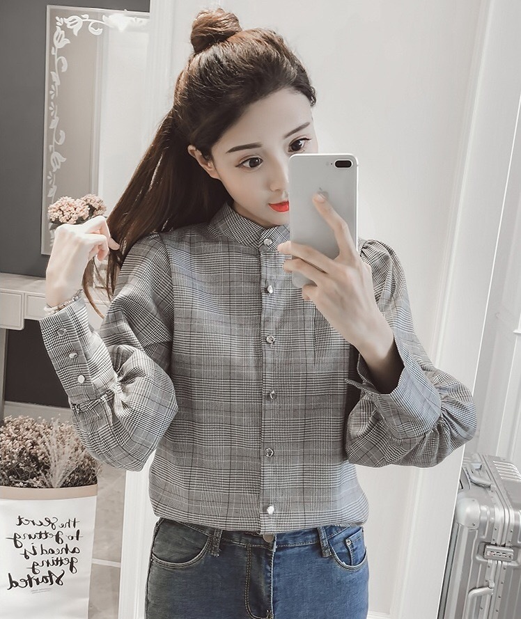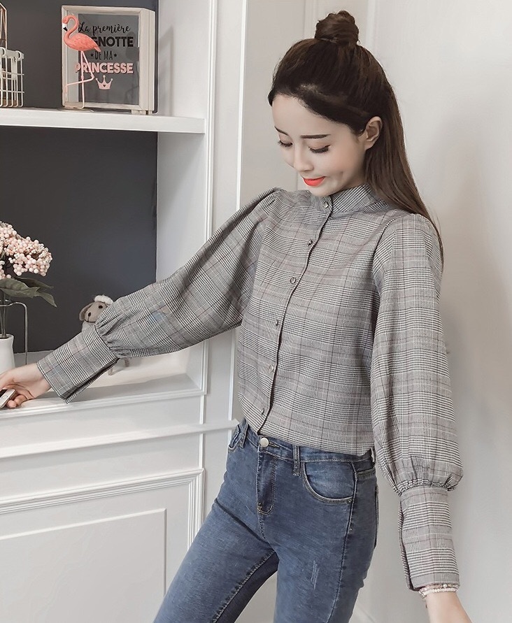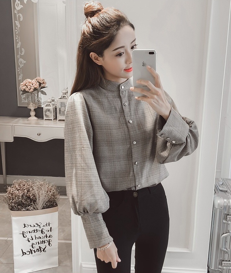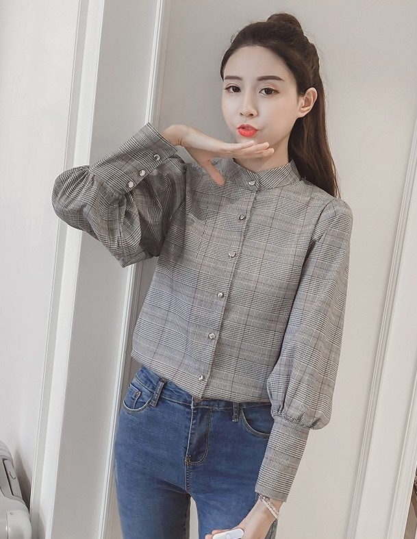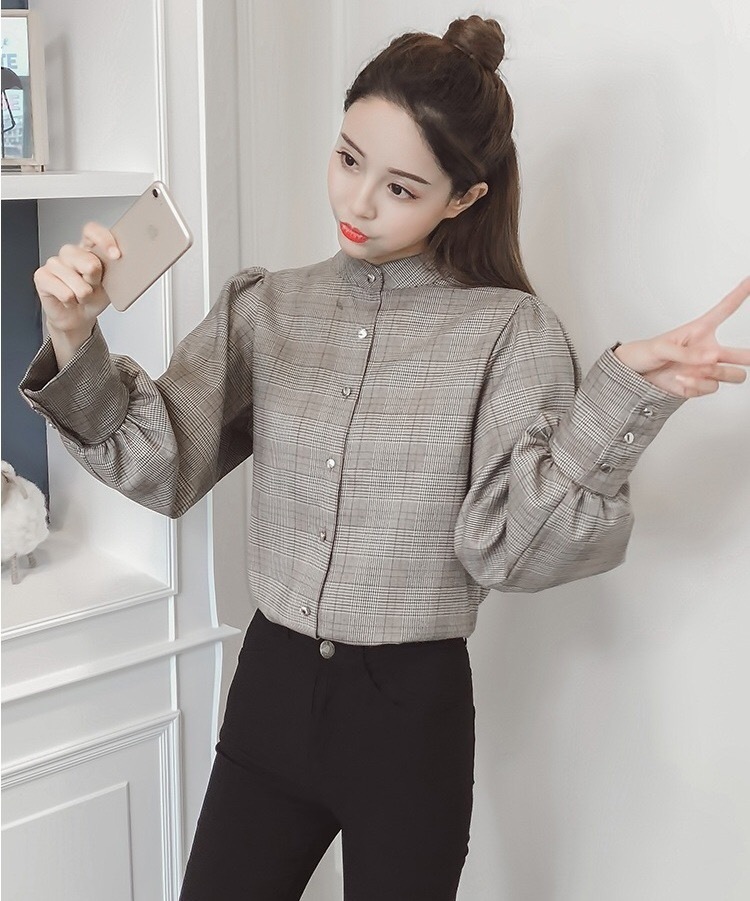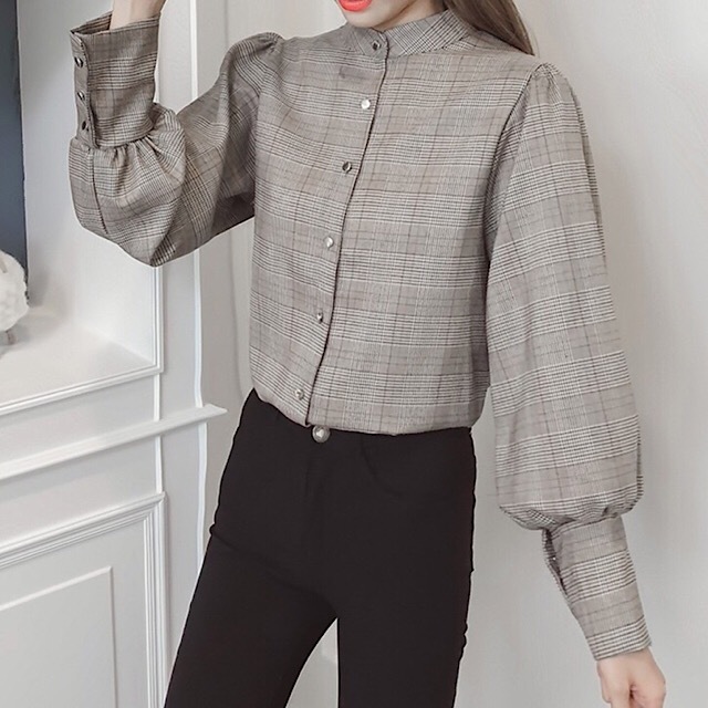落ち着いたカラーが大人っぽく、清楚な雰囲気の長袖チェックシャツです。