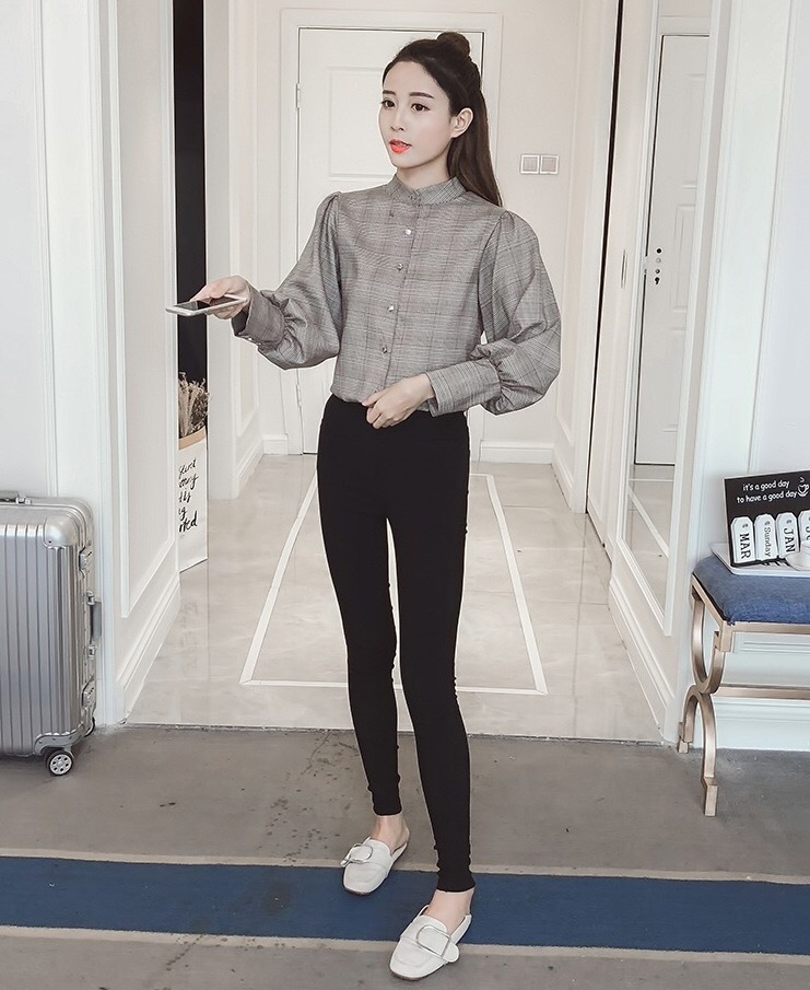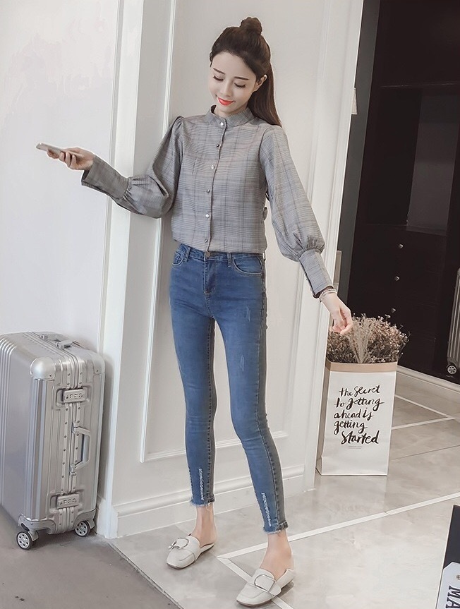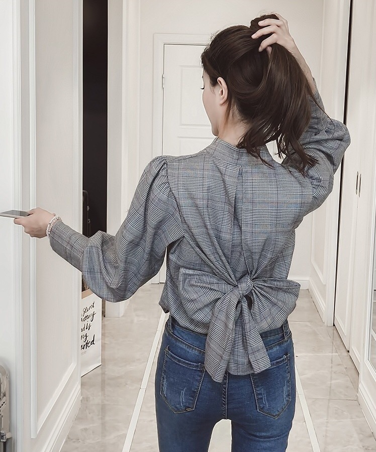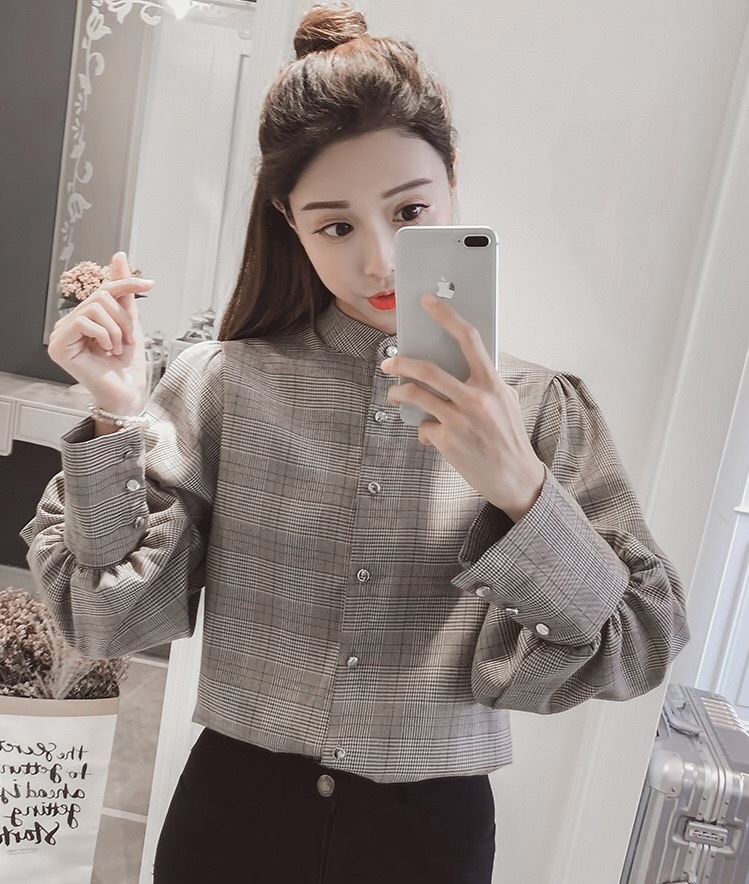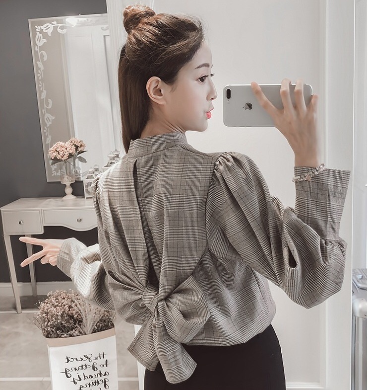 落ち着いたカラーが大人っぽく、清楚な雰囲気の長袖チェックシャツです。