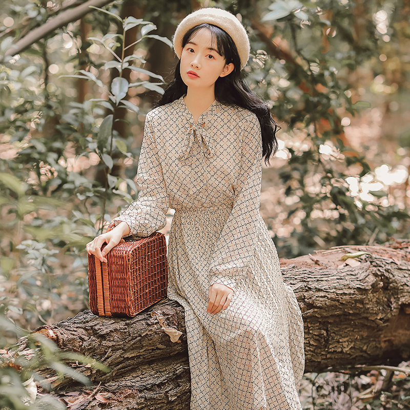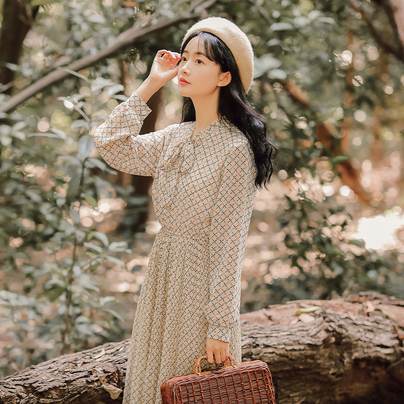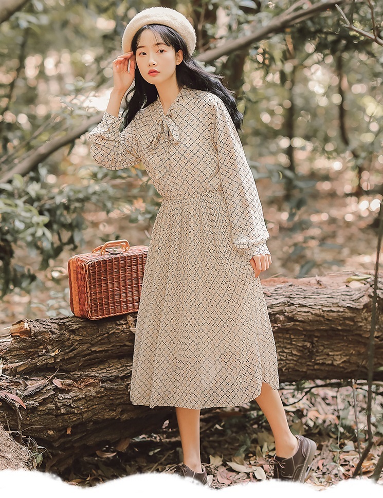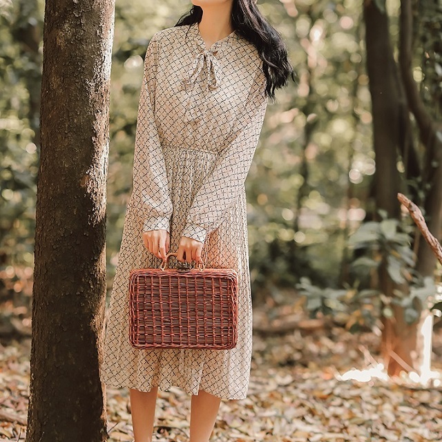 細かな総柄プリントで程よい存在感を与え、ボウタイリボンできちんと感をプラス!