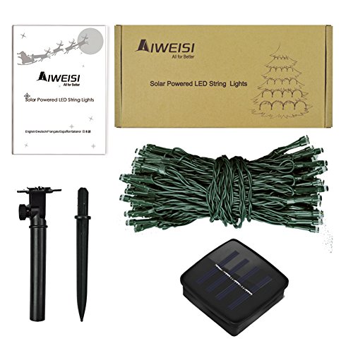 Outdoor String Lights AIWEISI 8 Lighting Modes 32.8 feet 100 bulbs LED Solar Powered Starry String Light Waterproof Warm White Christmas Twinkle Lighting for Garden Patio Yard Lawn