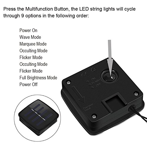 - MONEY SAVING BY SOLAR: The solar string light is charged by sunlight, there is No electricity cost, No battery replacement. Full charged for 5-6 hours in strong sunlight will work for 8-9 hours.