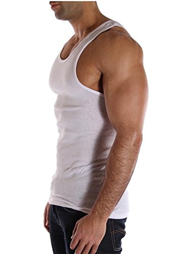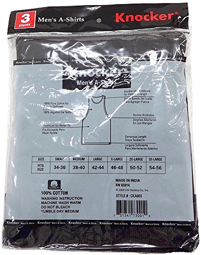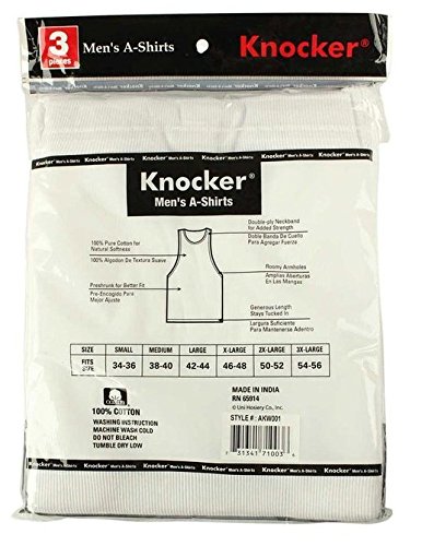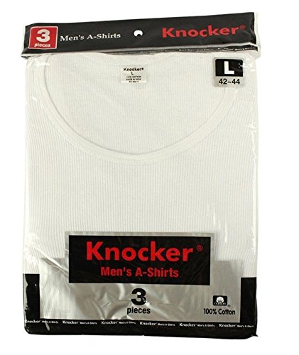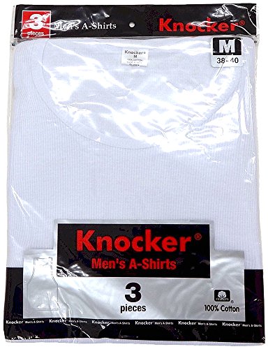 Knocker Mens Tank Top Cotton Ribbed A-Shirt Undershirt 3 Pack White