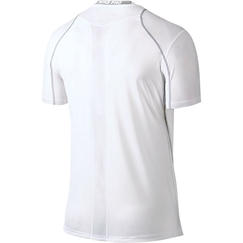 NIKE Men's Pro Fitted Short Sleeve Shirt, White/Matte Silver/Black, Small