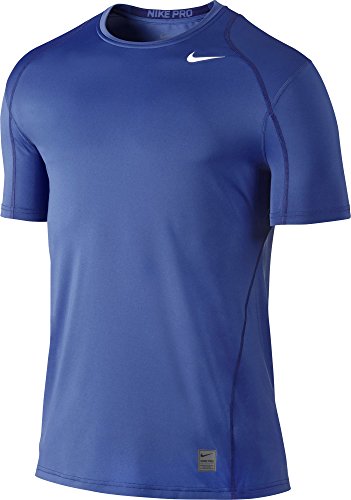 NIKE Men's Pro Fitted Short Sleeve Shirt, Game Royal/Deep Royal Blue/Whi, Large