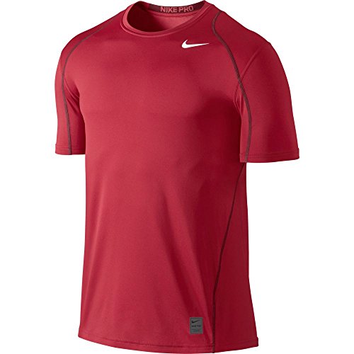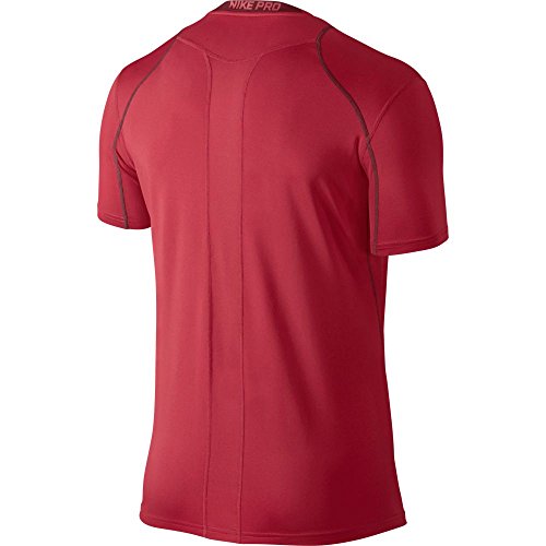 NIKE Men's Pro Fitted Short Sleeve Shirt, University Red/Team Red/White, Small