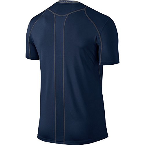 NIKE Men's Pro Fitted Short Sleeve Shirt, Obsidian/Dark Grey/White, Large