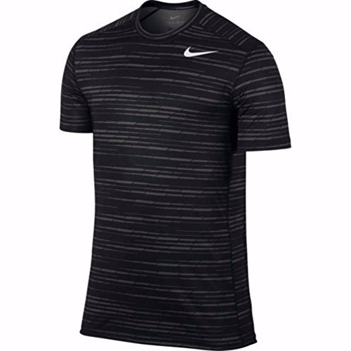 NIKE Men's Pro Fitted Short Sleeve Shirt, Black/Dark Grey/White, Large