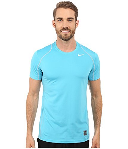 NIKE Men's Pro Fitted Short Sleeve Shirt, Omega Blue/Wolf Grey/White, X-Large