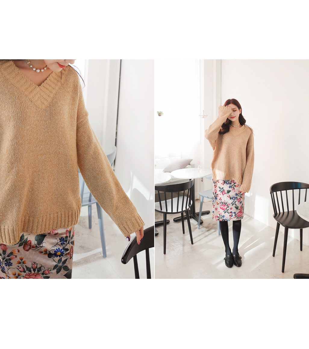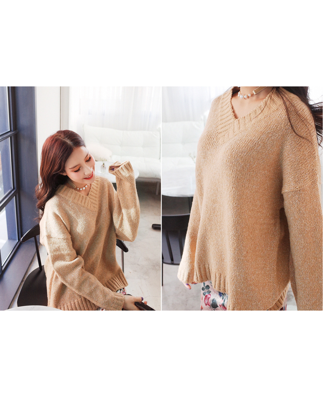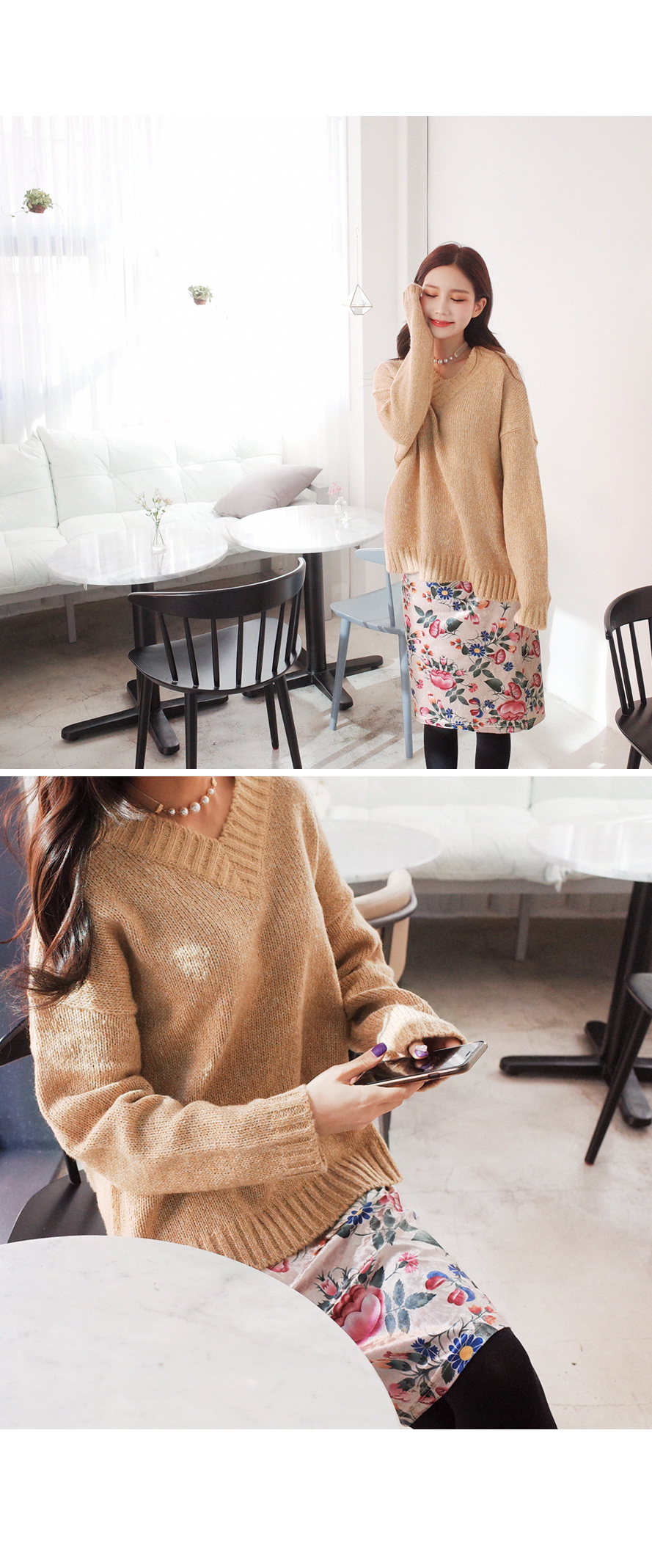 브이넥 스타일로 여리한 실루엣이 예쁜 니트입니다