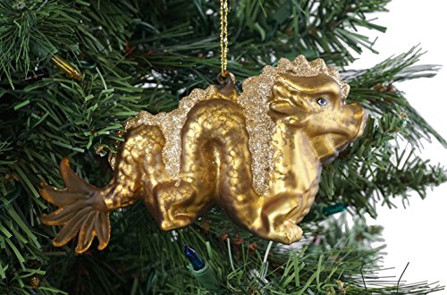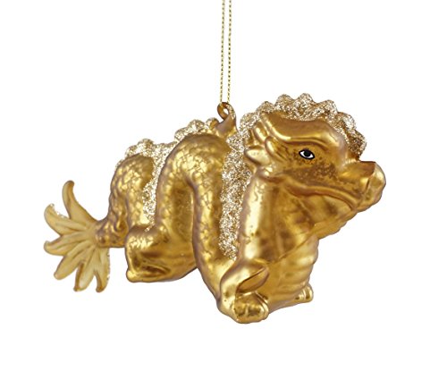 - Features a bronze-colored Chinese dragon with hand painted glittery details