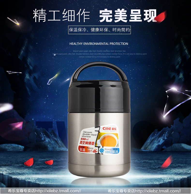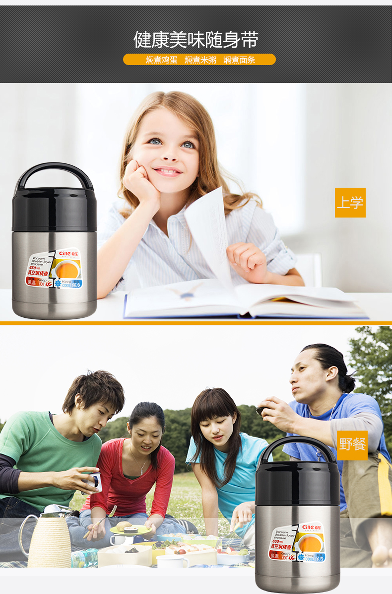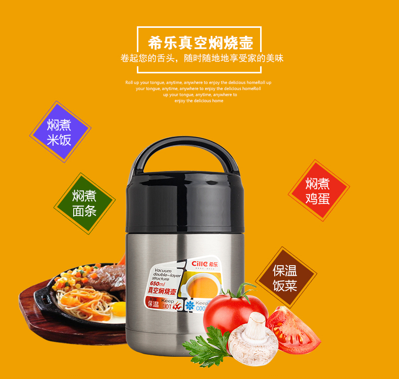 Capable keeping rice, noodles, and eggs fresh, 650ml Stainless Steel Vacuum Insulation Barrels Boxes Portable Lunch Box Soup Bucket can be easily transported from your home to your office without taking up much space or weight. Simply prepare your meals at home and take it to the office thanks to the steam and heat inside the pot.