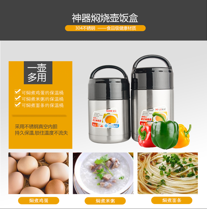 XM-650 Stainless Steel Vacuum Insulation Barrels Boxes Portable Lunch Box Soup Bucket 650ml can hold a substantial amount of rice, noodles, and other meals with extreme ease. This allows you to have your meals in the office without having to constantly spend money on eating out during your lunch break.