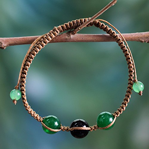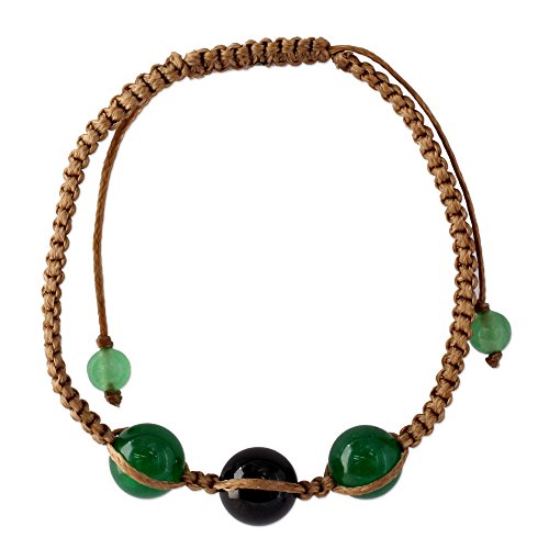 -. Binding : Jewelry -. Brand : NOVICA -. Department : womens -. EAN : 0808773344600 -. Feature : An original NOVICA fair trade product in association with National Geographic. / Includes an official NOVICA Story Card certifying quality & authenticity. / NOVICA works with Ritu to craft this item. / Includes an original NOVICA jewelry pouch to keep for yourself or give as a gift. / A keepsake treasure designed to be loved for years to come. -. Label : NOVICA -. Manufacturer : NOVICA -. MPN : 195662 -. PackageQuantity : 1 -. PartNumber : 195662 -. ProductGroup : Jewelry -. ProductTypeName : FASHIONNECKLACEBRACELETANKLET -. Publisher : NOVICA -. Studio : NOVICA -. Title : NOVICA Dyed Black and Green Onyx Macrame Shambhala Style Bracelet, Adjustable, 'Protective Tranquility' -. UPC : 808773344600