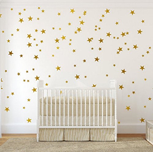 Gold Wall Decal Stars (123 Decals) | Easy to Peel Easy to Stick + Safe on Painted Walls | Removable Metallic Vinyl Star Decor |Star Sticker Large Paper Sheet Set...