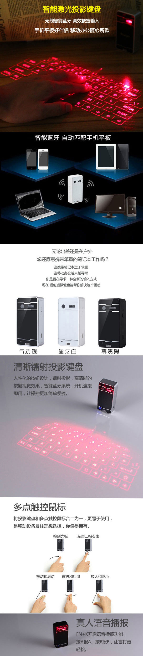 Note: The user uses laser Bluetooth keyboard, each key is pressed the system will automatically issue a "beep" sound