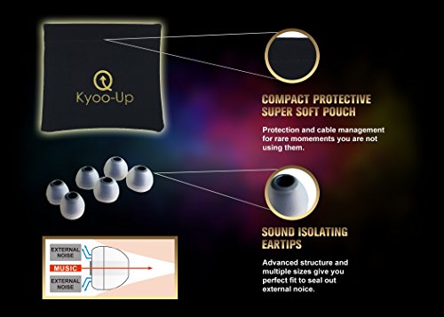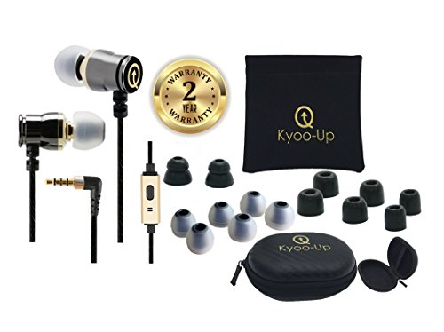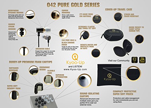 Kyoo-Up O42 In Ear Headphones, Bundle: Noise Isolating Earbuds with Mic, Earphones with case, Earbud Pouch, Premium Foam Ear Tips (Black and Gold earbuds)
