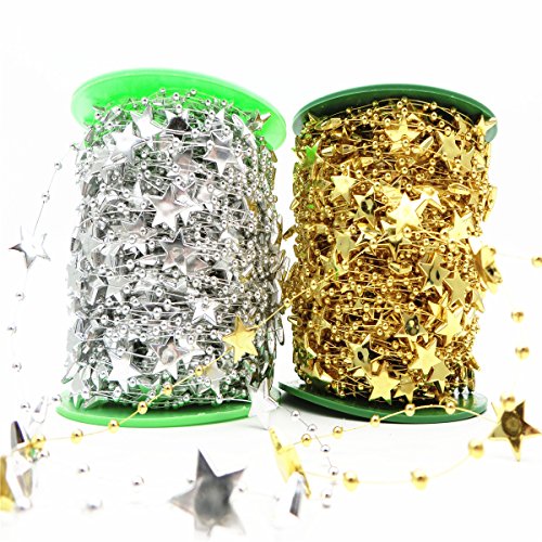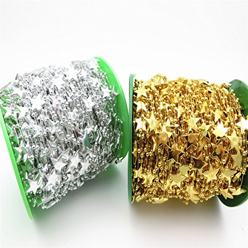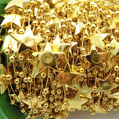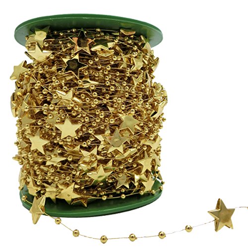 BoJia 200ft 15mm Star shape Crystal Beads for DIY Christmas tree accessories Electroplating Wedding Garland,DIY Clothing DIY Bracelet (Gold)