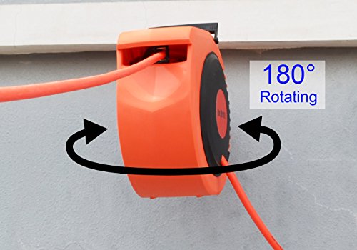 Swivel bracket for mounting hose reel on a wall or ceilling and make hose reel can be rotated from 0 to 180 degree; Spring-powered mechanism retracts the hose quickly, automatically and easily