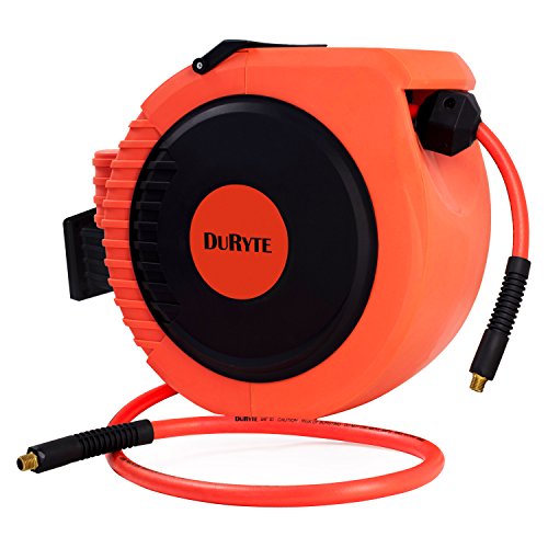 DuRyte Pro Retractable Air/Water Hose Reel with Excellent Optional-Position Lock Mechanism and 3/8-Inch by 50-Feet Hybrid Hose, Max. 300 PSI