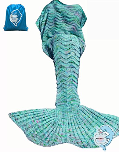 Title : LAGHCAT Mermaid Tail Blanket Knit Crochet and Mermaid Blanket for Adult,Sleeping Blanket (71"x35.5", Wave Mint)