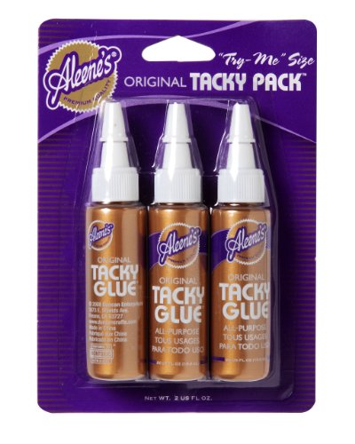 Aleene’s® Tacky Pack™ contain three miniature bottles of Aleene's Original Tacky Glue®adhesives. They’re a great way to sample glues you haven’t tried, and they’re perfectly sized for storing in your purse, desk and junk drawer.Feature