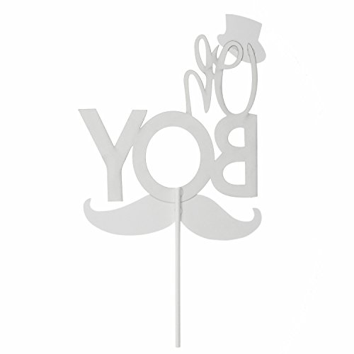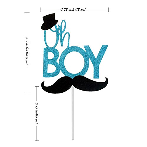 31 Counts Blue Monogram Oh Boy Cake Topper Black Mustache Hat Bowtie Cupcake Picks For Baby Shower Birthday Anniversary Party Decorations Supplies by Shxstore
