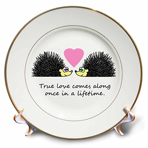 3dRose cp_6307_1 True Love Comes Along Once in a Lifetime Cute Hedgehog Love Design Porcelain Plate, 8-Inch
