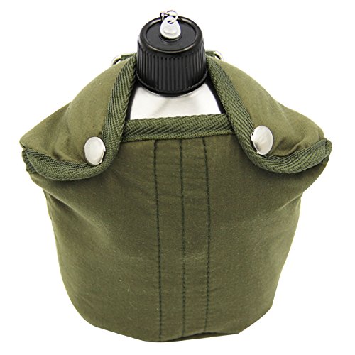 MILITARY STAINLESS STEEL 1L CANTEEN WITH 0.6L CUP G.I. ARMY GREEN NYLON COVER