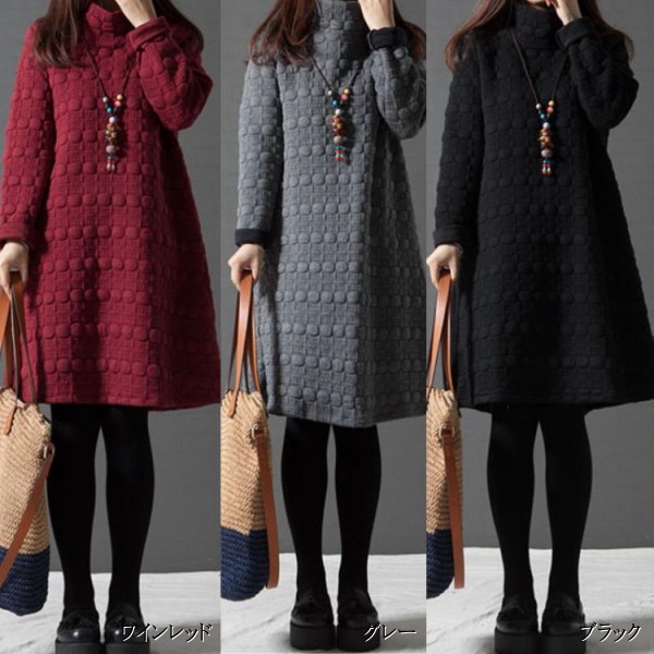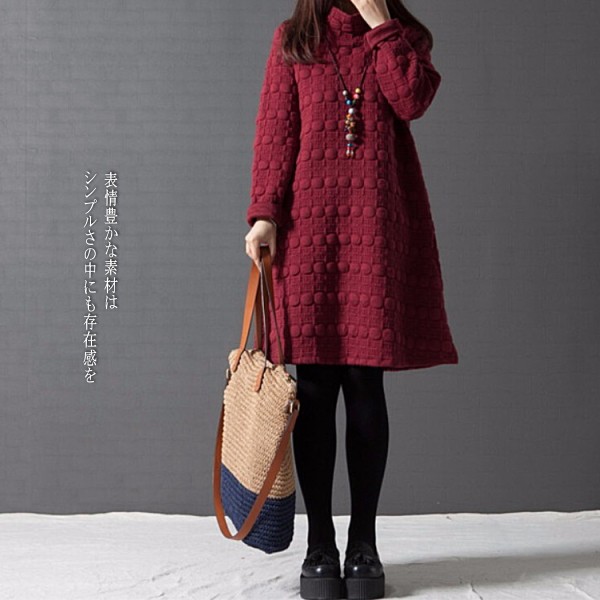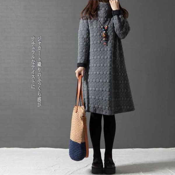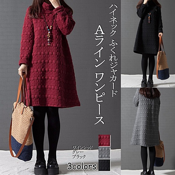 | 商品説明 | ハイネック ふくれジャカード Aライン ワンピース♪ 立体感のある柔らかな素材感のワンピースです。 ふんわりAラインでさりげなく体型カバーも♪ |
