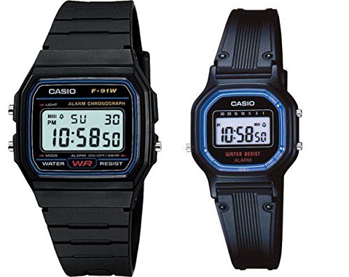 -. Title : Casio F91W-1/LA11WB-1 Men's and Women's Resin Band Alarm Chronograph Digital Watch Set