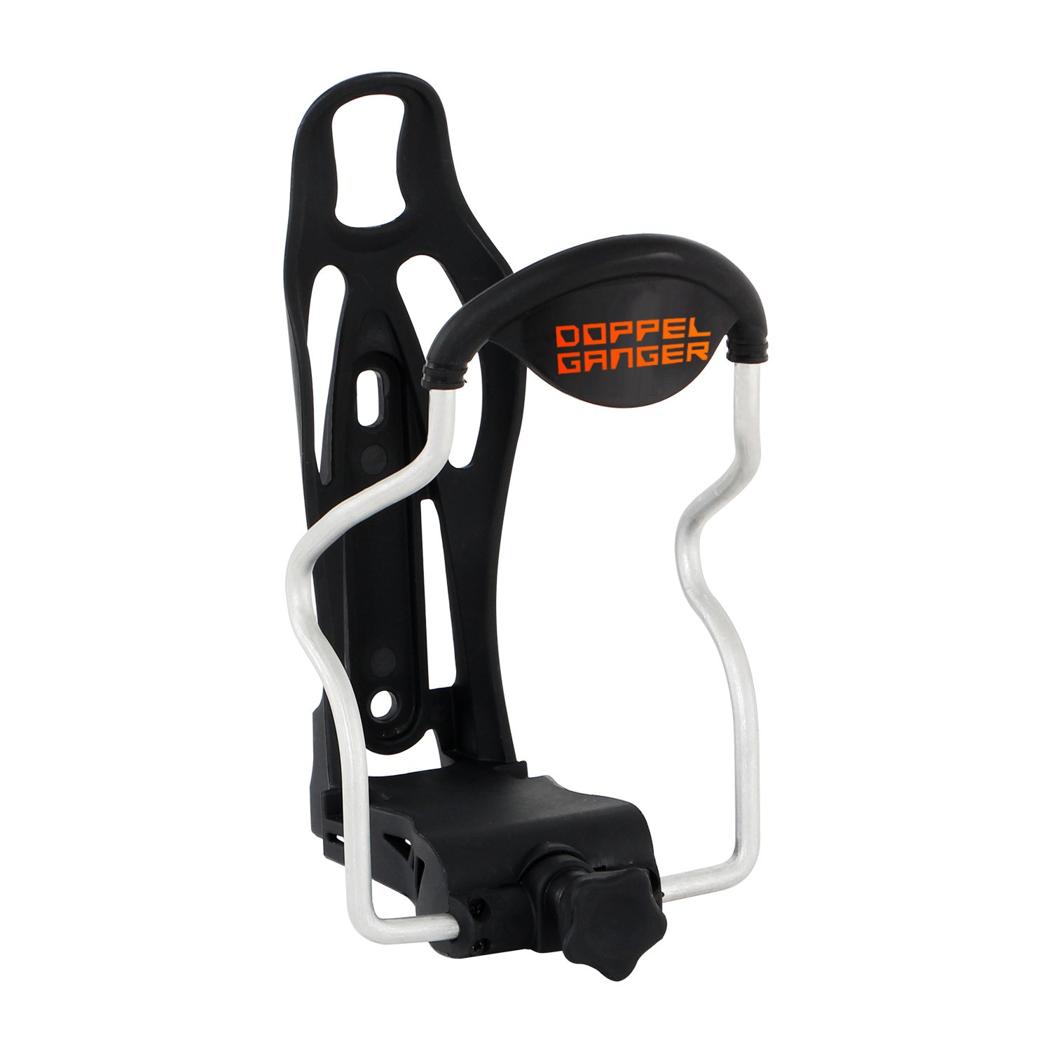 Bottle cage that can hold a wide range of size drink bottles from 250 ml can size to large drink bottle size.