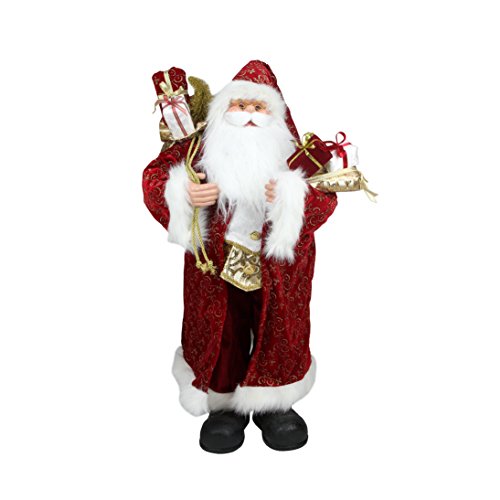 Northlight Standing Santa Claus in Long Red and Gold Robe with Gifts Christmas Figure, 32"