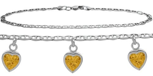 -. Title : 10K White Gold Mariner Anklet with 1.85 Carat Genuine Citrine Heart Charm