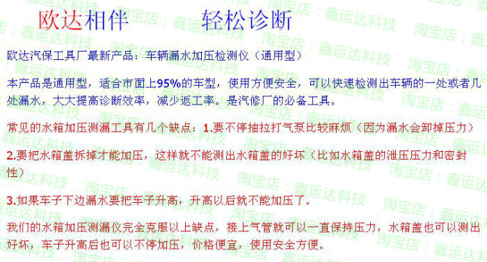 connect with gas on one side, and the other side connect with car Radiator for checking the leakage