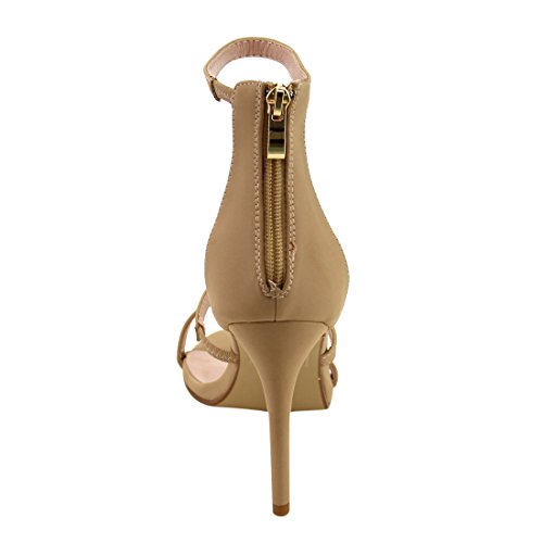 BELLA MARIE IC38 Women's Ankle Strap Back Zip Wrapped Stiletto Heel Dress Sandal