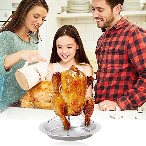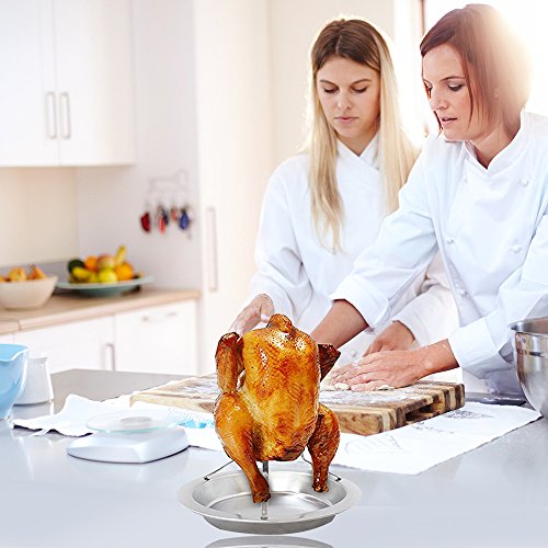 ❈Chicken Roaster Rack - Designed with bottom pan to hold beer, wine, and other liquid or herb combination to grill the chicken in the oven or on the barbecue;