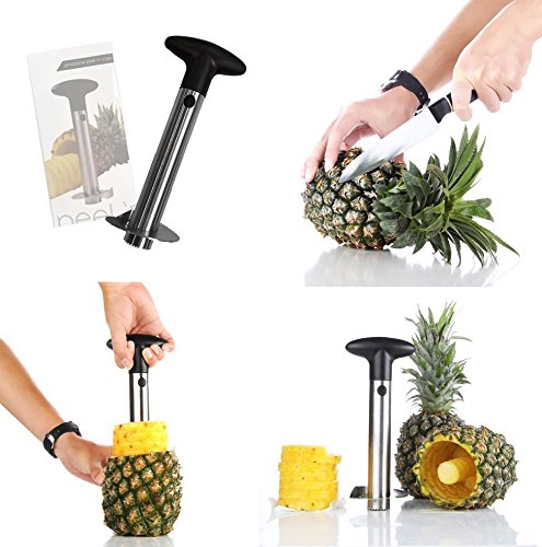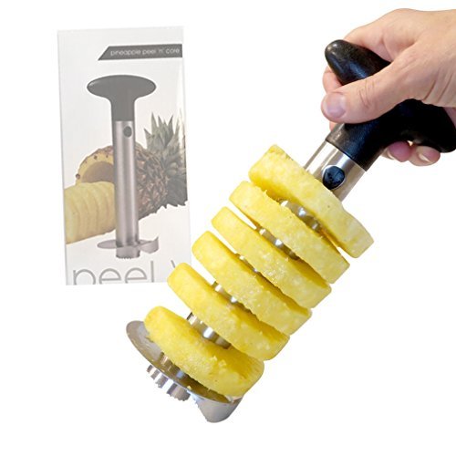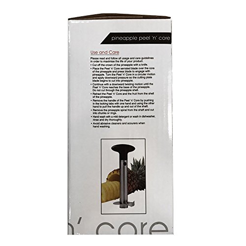 Product Description This pineapple peel 'n' core now allows you to peel and slice an pineapple in less than 30s. It is very easy to clean up by removing the handle and rinse it with water. 0