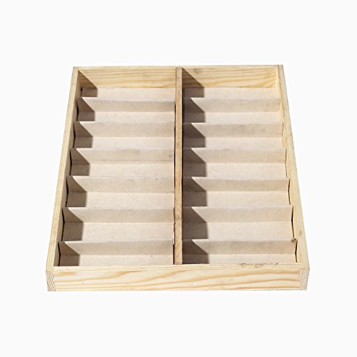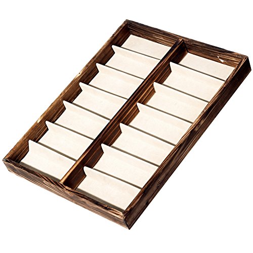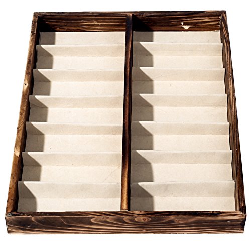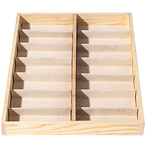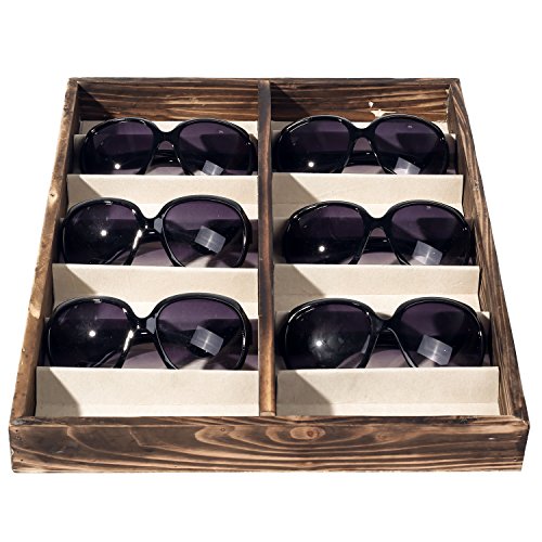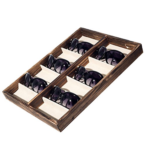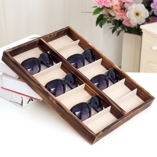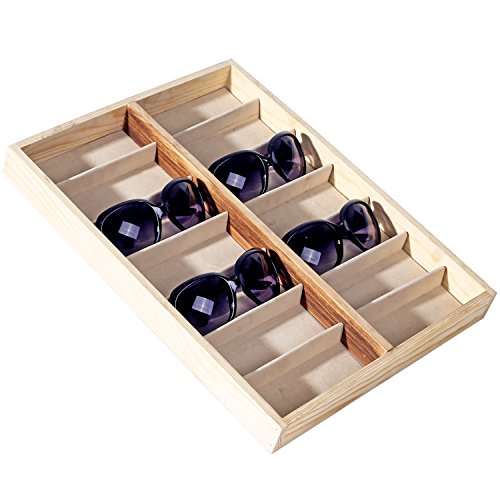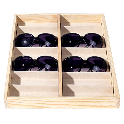 -. Feature : A deluxe open-top wooden case designed to store and display sunglasses and eyewear. / Features 14 fabric-lined compartments that allow you to keep your eyewear protected and easy to find. / Ideal for storing sunglasses as well as other items, including jewelry, craft supplies, watches, and various items in your retail store. / **Official MyGift® product.** / Approximate Dimensions (in inches): 17 W X 1.75 H X 13 D.
