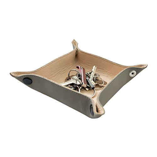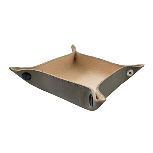 -. Feature : PERFECT FOR KEYS, CHANGE, PERSONAL ITEMS: This rustic, handcrafted Valet Tray is the perfect home for dumping your keys and spare change when you get home from a busy day. No more wasting time searching through the house for your car keys when you have this attractive Valet Tray to store them by your front door. / RUSTIC BRASS METAL SNAPS: The Valet Tray clips together with sturdy, heavy duty Brass Metal Snaps that firmly hold the corners in place and won't come apart unwillingly. Once clipped together, the space within the Valet Tray measures at 4.5 inches by 4.5 inches. / HANDMADE WITH THE FINEST MATERIALS: The Full Grain Leather that we use is the cream of the crop, the best leather around. After usage and time, the Stone Gray exterior will attain a unique patina showing grace and age. The interior is crafted using Soft Sheepskin, and with its smooth napa finish, gives a silky effect that is both durable, supple, and even water resistant. / SIMPLE AND FUNCTIONAL DESIGN: The Valet Tray is lightweight, durable and matches with any décor around the house. The Valet Tray also works great on your coffee table, or as a bedside storage container for your earplugs, cell phone, or in the bathroom for your small toiletries, lotions, etc. / MAKES A GREAT GIFT: This rustic yet elegant Valet Tray makes for a great housewarming gift, and is sure to appeal to any and all tastes. Perfect gift idea for your friend or loved one who constantly misplaces their keys. Now, when you ask, "where did you see them last?" it will be "Oh, yeah, in the Valet Tray." Save time and arguments with this neat little product.