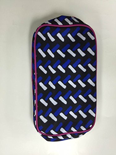 -. Feature : Bag measures approximately 8" wide x 4.75" tall x 2" base / Royal blue, black, White fuchsia trim / 100% Polyester with PVC Trim / Wrap-around zip closure / Fuchsia pink interior lining