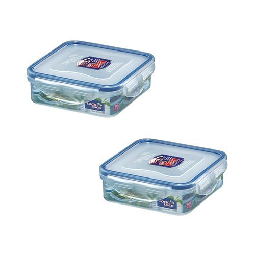 Lock&Lock HPL852 Square Short Food Container 430ml (x2)