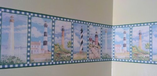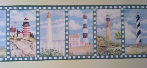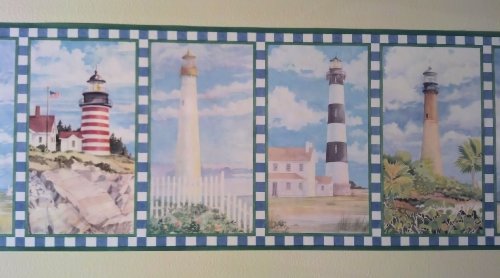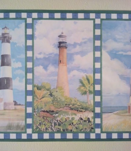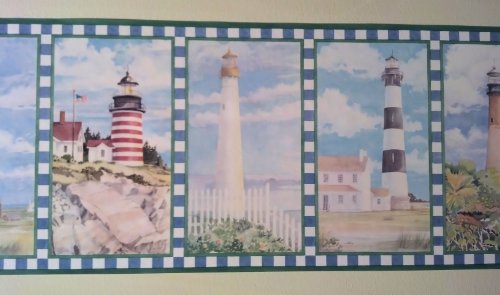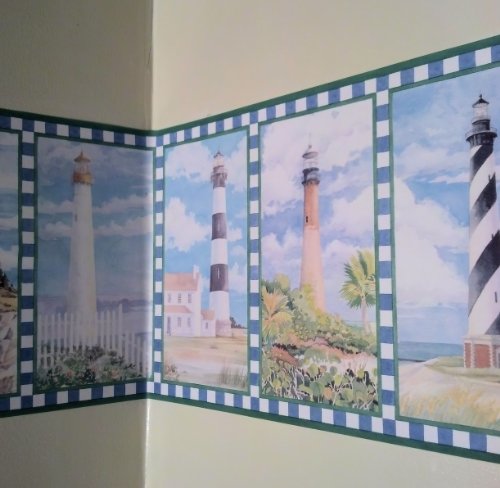 -. Feature : Lighthouse Wallpaper Border - 5 Scenes framed in series / Prepasted Wallpaper Border - 15 Foot Long Spools / 10.25 Inches Wide - Washable, Strippable