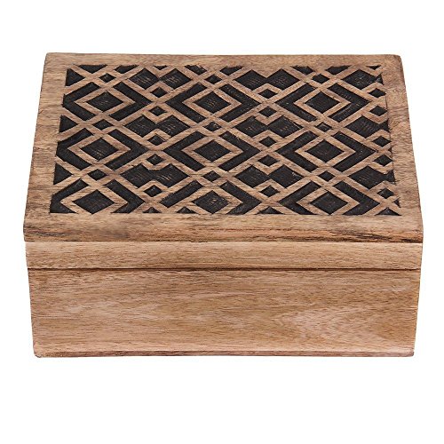 Rustic Wooden Keepsake Box with Hand Carved Geometric Pattern, 9 x6 x 4 inches